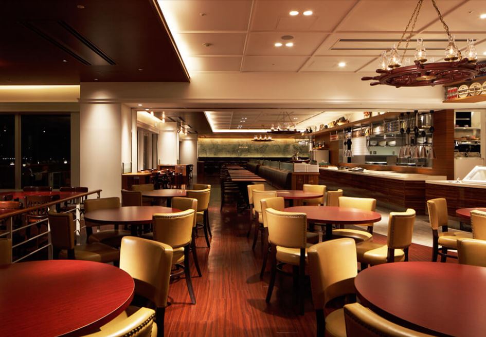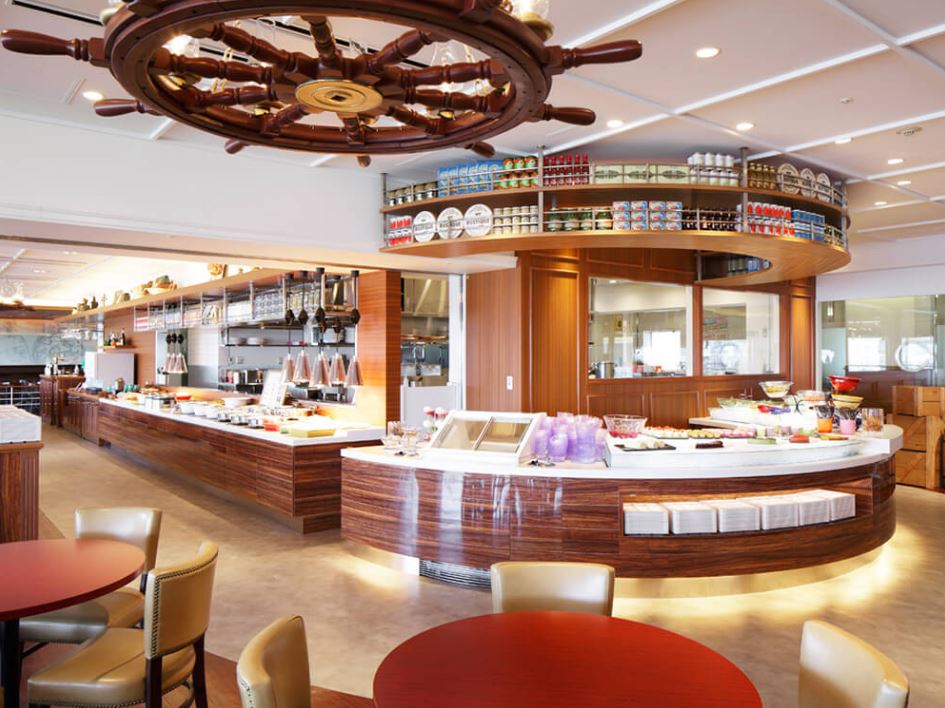 お台場のウォーターフロントに位置する「オーシャンクラブビュッフェ(OCEAN CLUB BUFFET)」は、東京湾の絶景を楽しみながら、和洋中の多彩な料理を堪能できる大型レストラン。