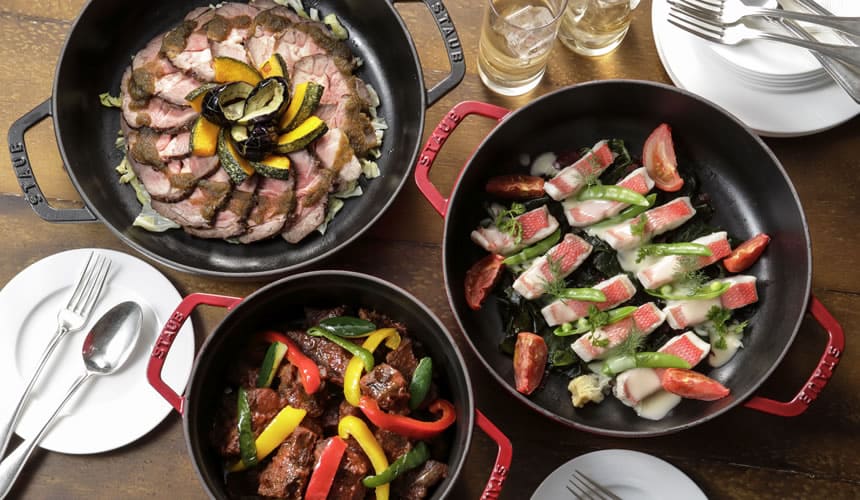 ホテルシェフが手がける本格メニューを、ライブキッチンで熱々のままご提供します。