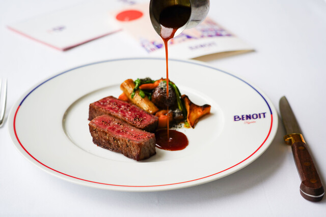パリの伝統と京都の四季を融合させたビストロ料理を楽しめる一軒。ミシュラン星付き「デュカス・パリ」が監修する本格フランス料理に、京都の旬の恵みを巧みに取り入れています。
