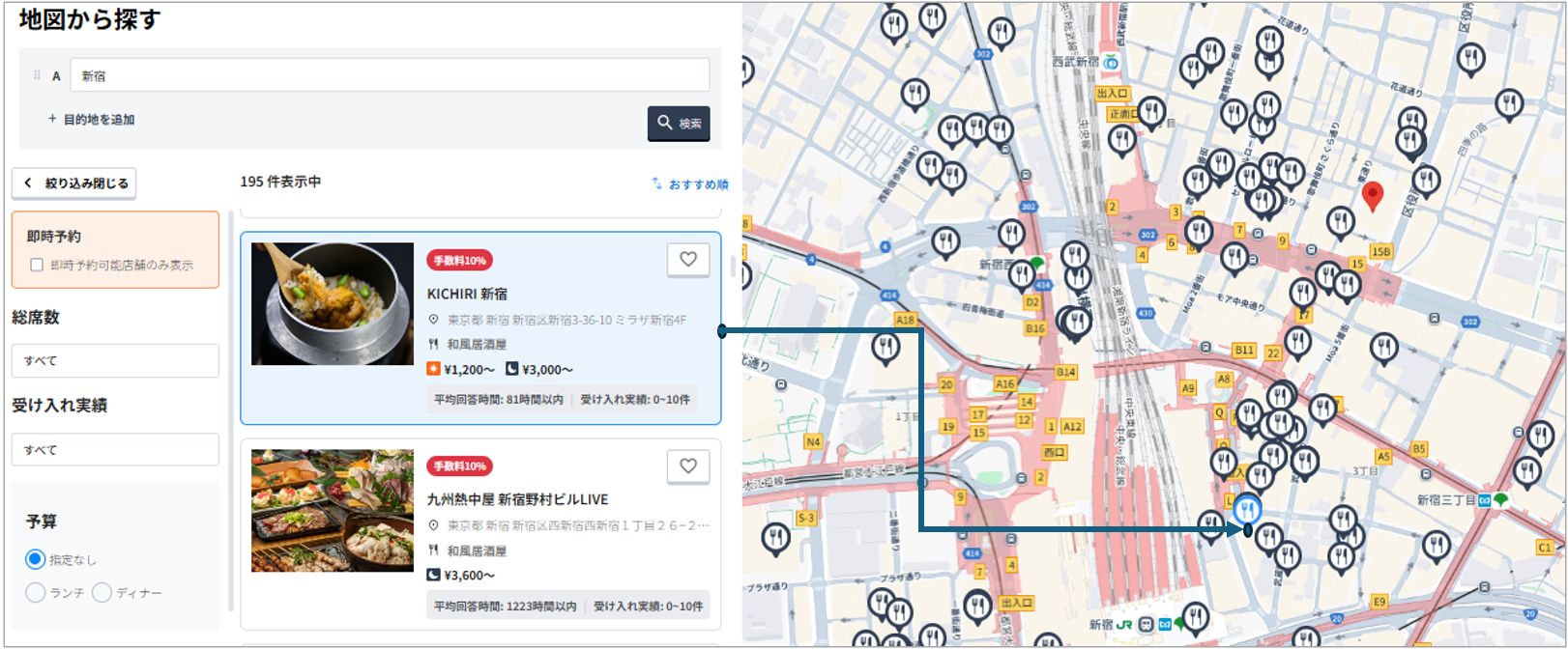 - ✅ 即時予約が可能な店舗だけを、地図上でサッと絞り込みできる