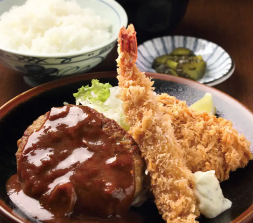 ハンバーグ&海老カツ