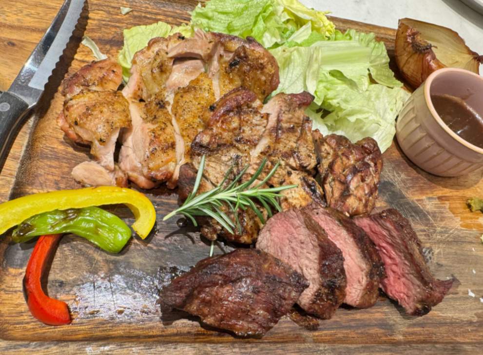 チキン、ポーク、牛の贅沢盛り合わせ。