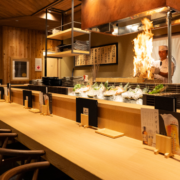 目の前で豪快に焼き上げる藁焼きや刺身・寿司など、職人の技が光る料理を、蔵元直送の日本酒とともに堪能できます。